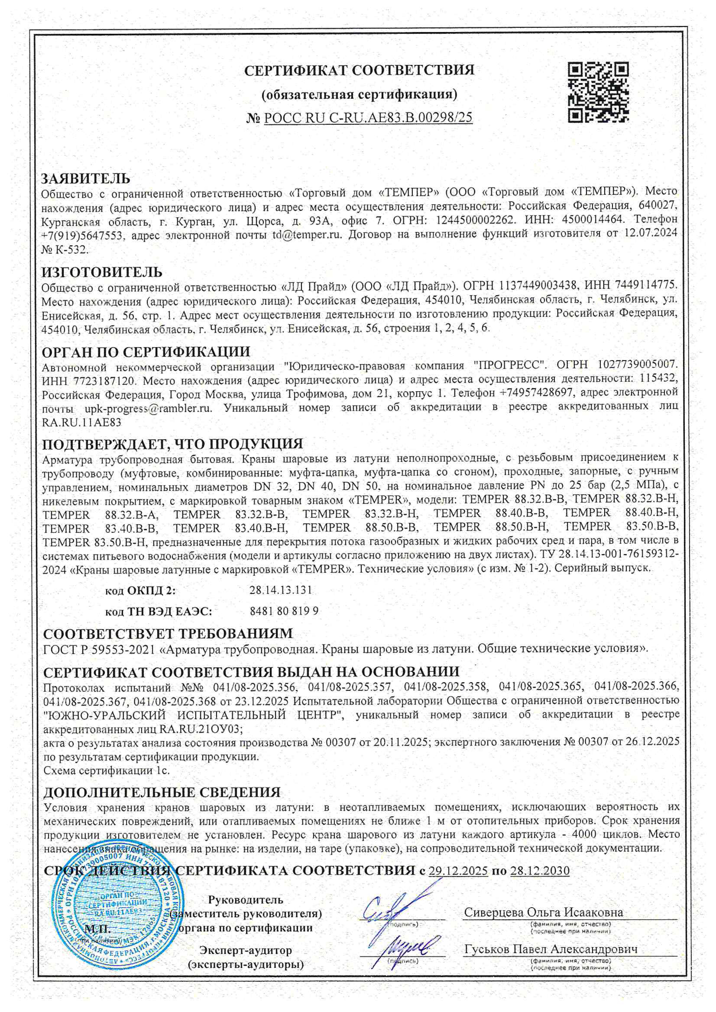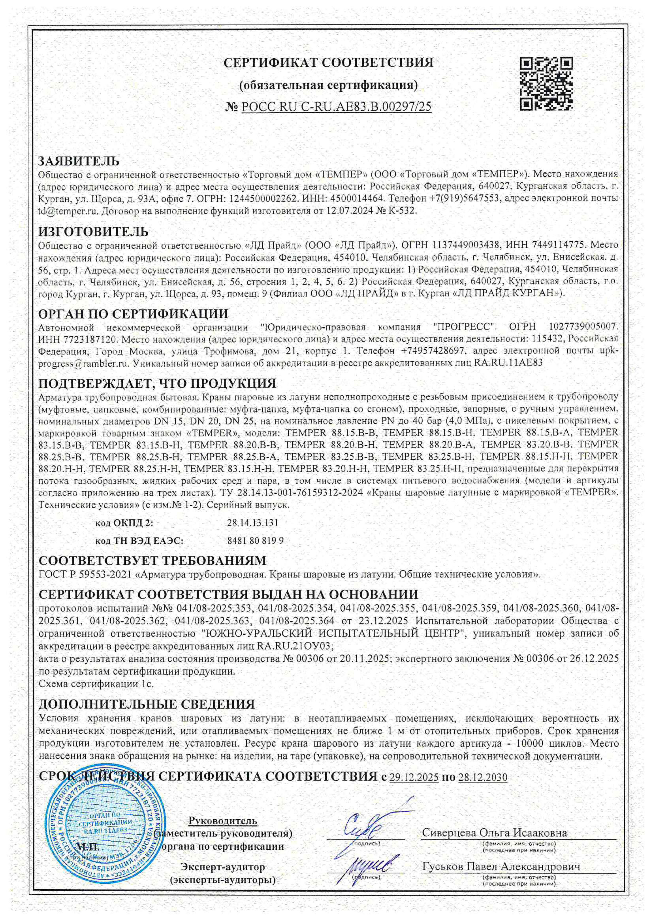 Сертификат соответствия ГОСТ латунные краны